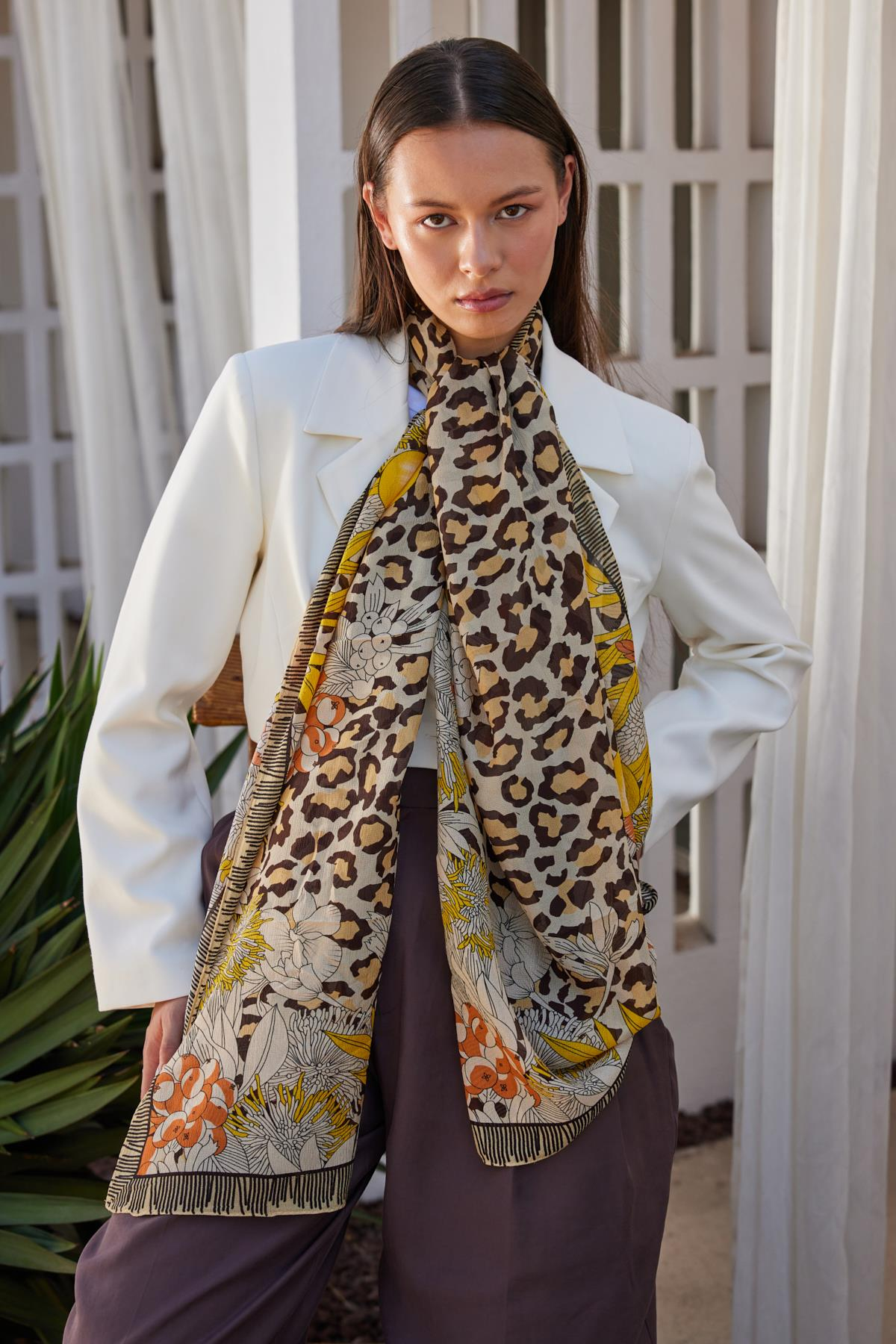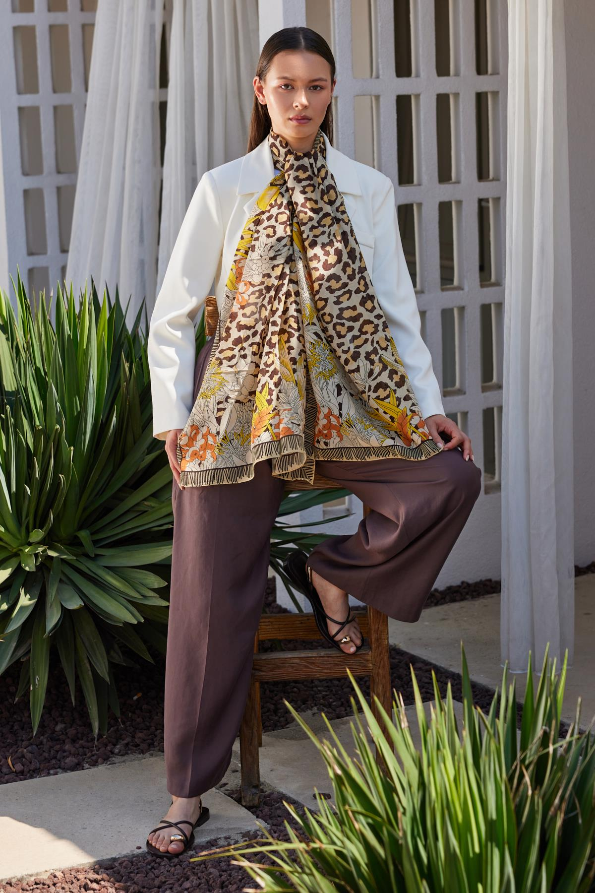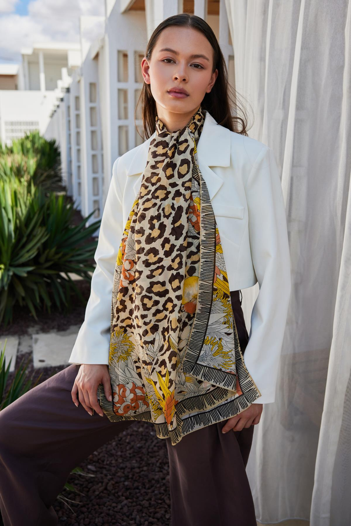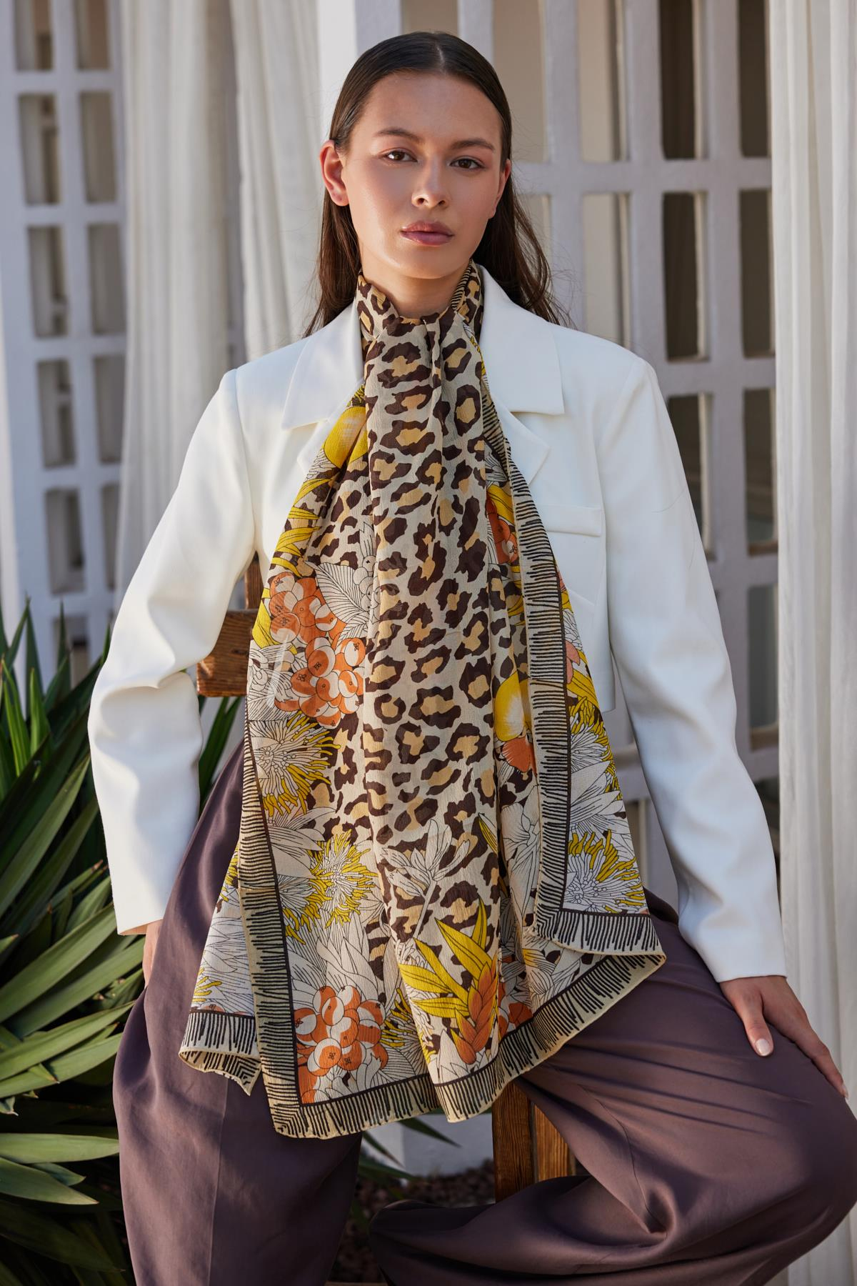 LİORA BEJ LEOPAR DESEN İPEK ŞAL