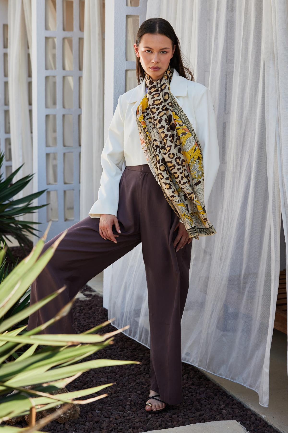%100 SAF İPEKTEN ÜRETİLEN LEOPAR DESENLİ ŞAL, MODERN ÇİZGİLERİYLE ZAMANSIZ BİR ŞIKLIK SUNAR. YUMUŞAK VE KONFORLU DOKUSU SAYESİNDE GÜN BOYU RAHATLIK SAĞLARKEN, GÜÇLÜ DESENLERİYLE TARZINIZI ÖNE ÇIKARIR. HEM GÜNLÜK KULLANIM HEMDE ÖZEL DAVETLER İÇİN İDEAL BİR SEÇİMDİR.