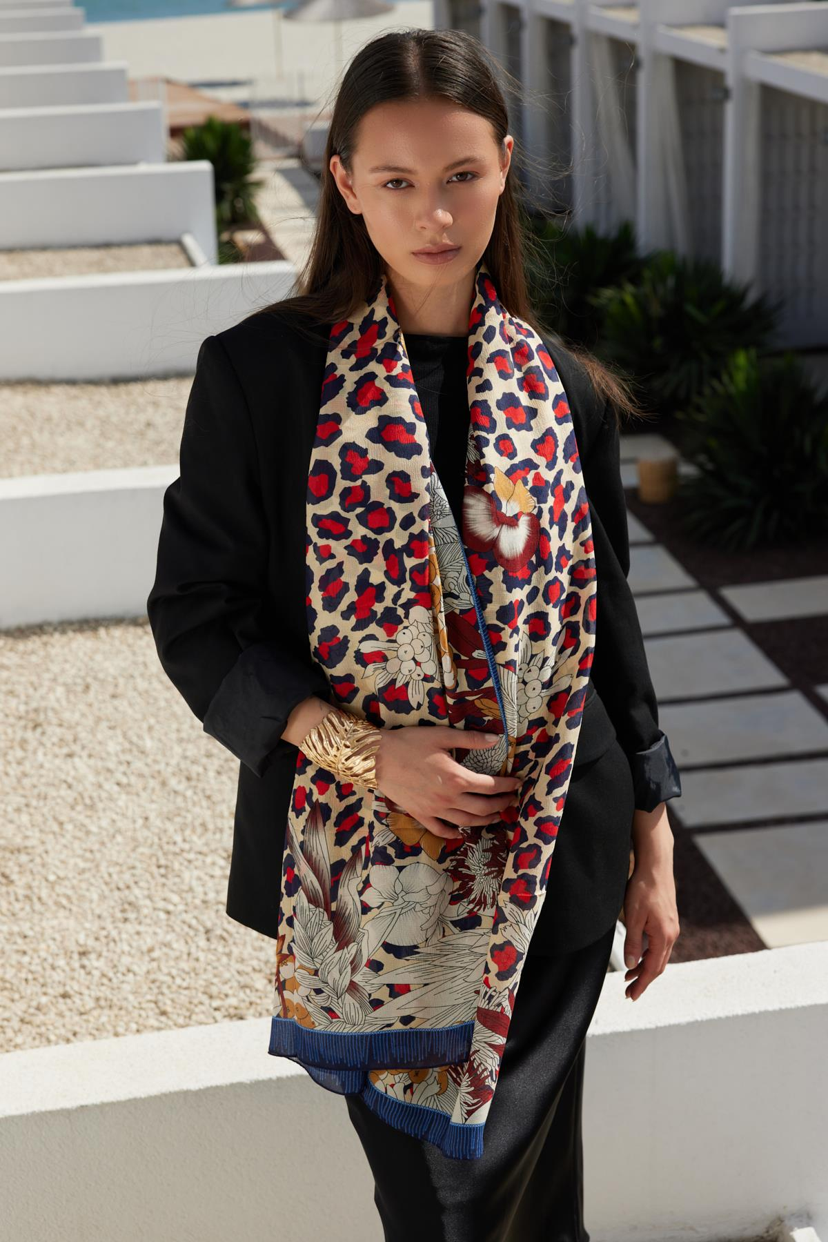%100 SAF İPEKTEN ÜRETİLEN LEOPAR DESENLİ ŞAL, MODERN ÇİZGİLERİYLE ZAMANSIZ BİR ŞIKLIK SUNAR. YUMUŞAK VE KONFORLU DOKUSU SAYESİNDE GÜN BOYU RAHATLIK SAĞLARKEN, GÜÇLÜ DESENLERİYLE TARZINIZI ÖNE ÇIKARIR. HEM GÜNLÜK KULLANIM HEMDE ÖZEL DAVETLER İÇİN İDEAL BİR SEÇİMDİR.