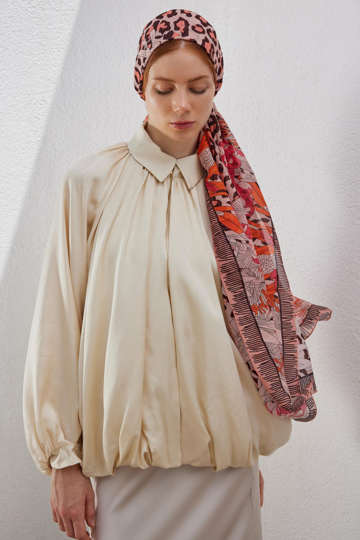 LİORA PUDRA LEOPAR DESEN İPEK ŞAL