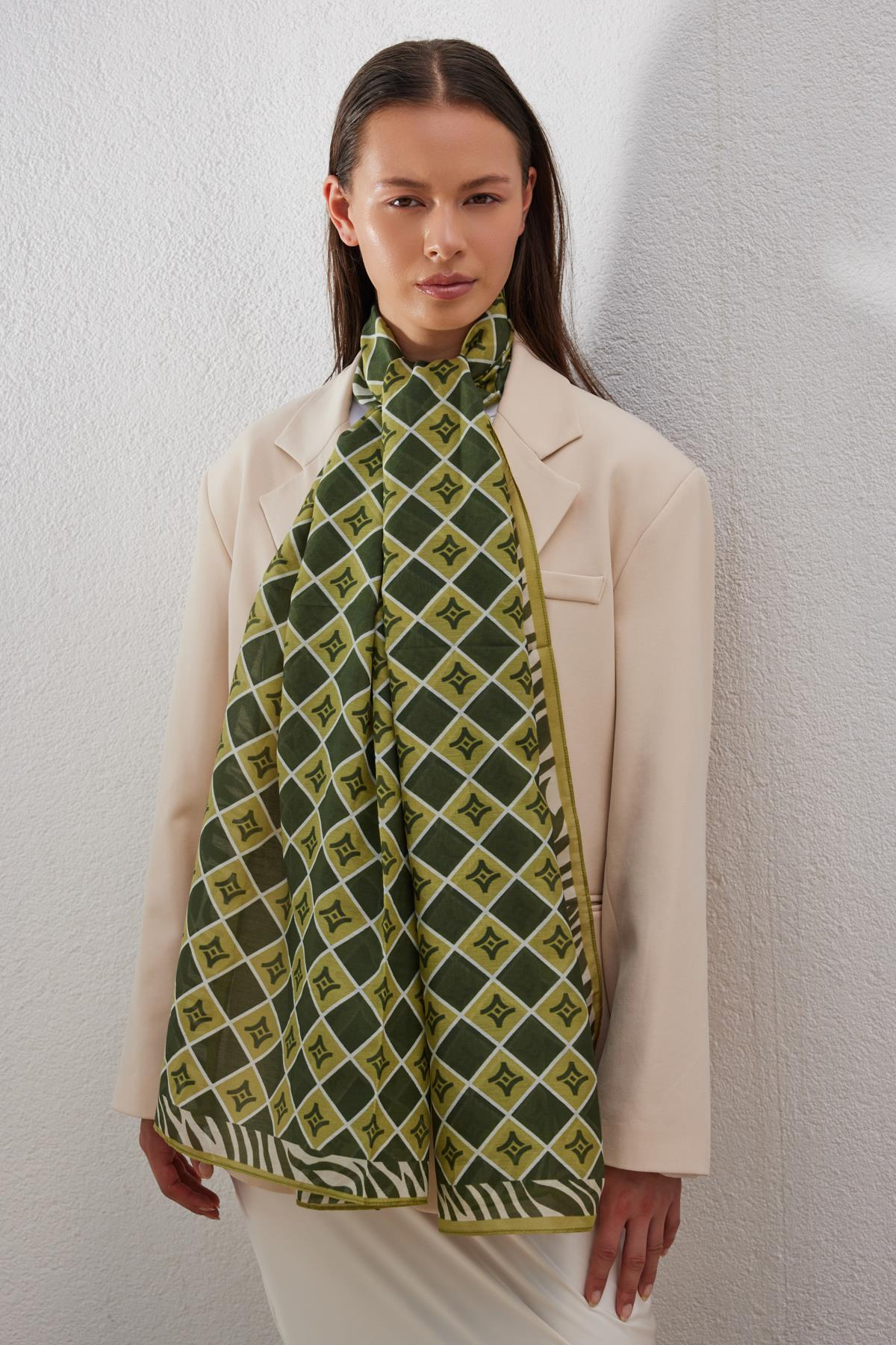 SAFİR YEŞİL LOGO DESEN PAMUK İPEK ŞAL